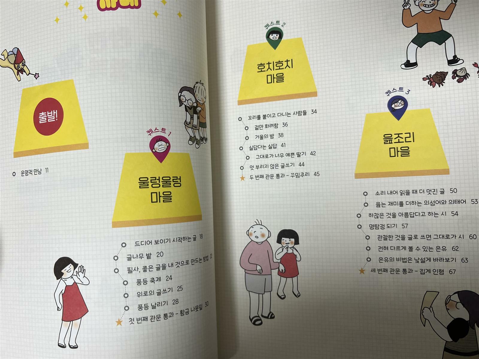 '글쓰기 완전정복 퀘스트' 책을 보았습니다. 요즘 글쓰기의 중요성에 대해 많이 들었는데 아이와 글을 어떻게 써나가야 하는지 참 어렵더라구요. 이 책은 쉬운 설명과 글쓰기에 대한 요점정리를 잘 해주어서 아이들이 보고 자신감을 얻을 수 있는 책입니다. 글을 쓴다는 것은 가장 마지막 관문이며 꽃인 것 같습니다. 말하고 듣고, 읽는 과정을 거쳐서 쓴다는 것은 사실 어려운 것이기도 합니다. 하지만 아이들이 두려움 없이 글을 쓰면서 나의 생각을 펼쳐나간다면 더욱 더 발전된 글쓰기가 될 것입니다. 책의 목차를 살펴보면 게임처럼 하나 하나 마을을 가면서 퀘스트 레벨 업을 하는 이야기 입니다. 주인공만 따라가면서 읽어나가면 글쓰기가 무엇인지 어떤 글이 있는지 정리가 되는 책입니다. 무엇보다 따분한 설명 위주의 책이 아니라 즐겁게 퀘스트 레벨 업을 하면서 읽어갈 수 있습니다. 엄마가 읽어주셔도 좋고 스스로 읽기에도 글밥이 많지 않아서 충분히 읽어 나갈 수 있습니다. 여러번 읽으면서 글쓰기에 대해 큰 틀을 알고 나면 자신감이 생길 것 같습니다. 몇 달전에 아이와 체험학습 보고서를 쓴 적이 있는데 이 책에서도 보고서에 관한 글쓰기를 알려주고 있습니다. 보고서의 핵심이 무엇인지 잘 알고 나면 쓰는 것도 큰 어려움이 없을 것입니다. 마지막 질문의 동굴에서 아이들에게 질문을 합니다. 이 질문을 통해 아이들이 생각하며 한층 더 성장 할 수 있는 것 같습니다. 미래사회에는 첨단 기술과 인공 지능이 사용될텐데 글쓰기가 사라질까요? 이 책을 보시면 글을 사라지지 않는다는 것을 확실히 알게 되실 겁니다. 우리가 생각하는 작가들이 쓰는 글쓰기만 글이 아니며, 우리 주변에 알게모르게 글이 많이 있다는 것입니다. 글쓰기가 어렵다고 느끼거나 어떤것인지 궁금한 초등학생들에게 추천해드리고 싶습니다. 출판사로부터 도서를 제공받아 직접 읽고 작성한 리뷰입니다. #글쓰기완전정복퀘스트 #북멘토 #김민화 #책세상 #맘수다 #책세상맘수다카페