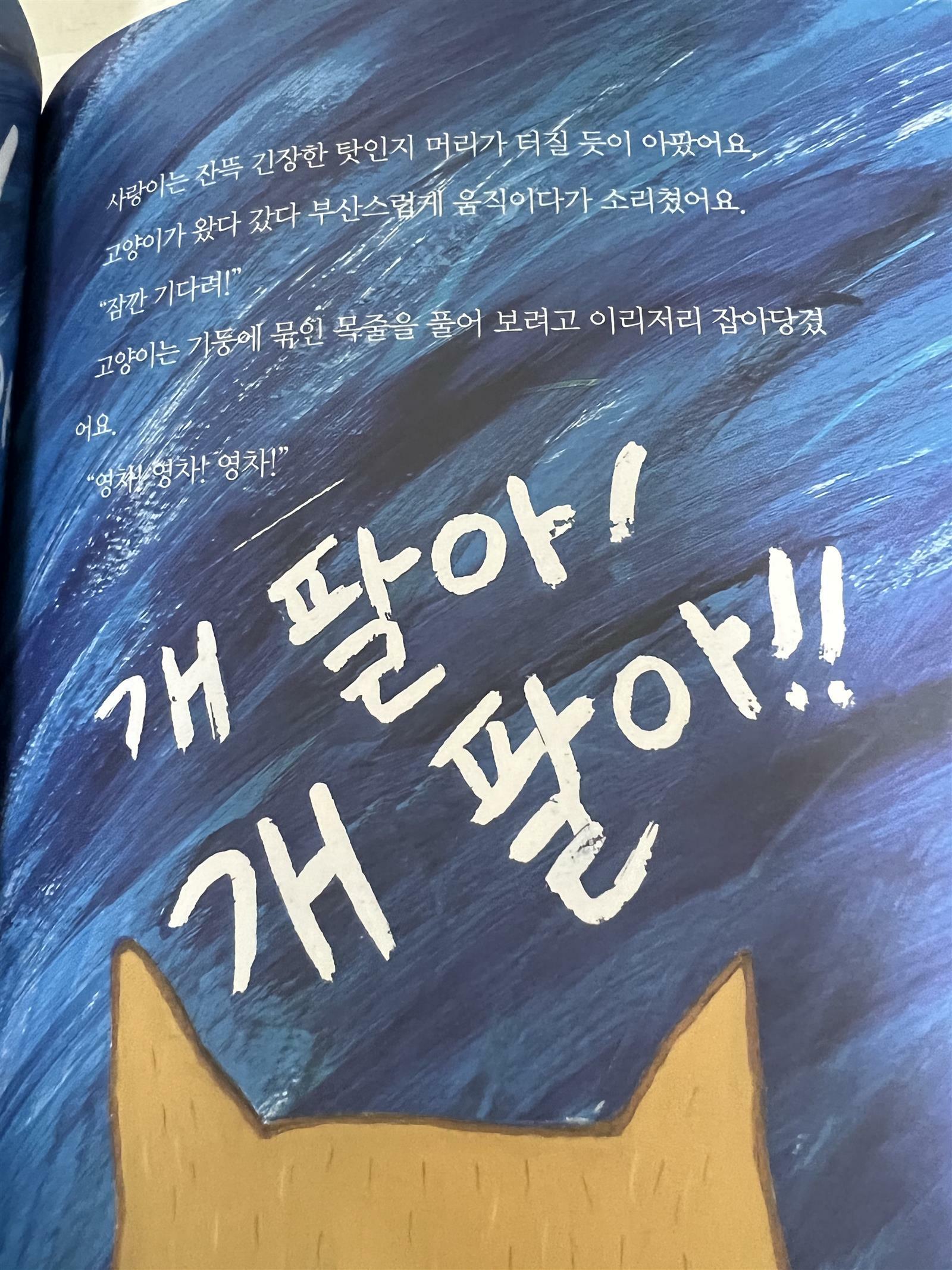'진돗개 사랑이의 탈출 대작전' 문고책을 읽어 보았습니다. 가문비어린이 출판사 책인데 아이가 잘 보는 출판사라서 이 책도 기대가 되었습니다. 즐거운 동화여행 시리즈 174번 책으로 얇은 편입니다. 글씨크기도 큰 편이라서 저학년이 읽기에 좋은 책입니다. 진돗개는 우리나라에 널리 알려지 용맹한 개입니다. 이 책의 주인공도 진돗개 사랑이입니다. 산골에 할머니와 할아버지의 사랑을 독차지하며 같이 살게된 사랑이는 산짐승을 쫓아내면서 곡식을 지켜왔습니다. 하지만 세월이 흘러 8년이 지났고, 그만큼 할머니, 할어버지와 함께 늙어버렸습니다. 예전만큼 목소리도 나오지 않고 간밤에 노루가 온 것을 알면서도 쫓아내지 못했습니다. 목소리가 나오지 않아서 당황한 진돗개의 모습의 우리 사람의 모습과 참 닮아 있습니다. 할머니와 할아버지가 늙어가는 만큼 사랑이도 늙어가고 있는 모습을 잘 묘사하고 있습니다. 노루를 쫓아내지 못한 사랑이에게 화가 난 할아버지는 해서는 안 될 말을 하고 맙니다. 개장수에게 팔아버린다는 이야기를 사랑이와 떠돌이 고양이가 듣게 되지요. 할머니는 사랑이도 늙었다며 이해해 주지만 할아버지는 인정하고 싶지 않은가 봅니다. 어쩌면 사랑이의 늙어가는 것이 슬퍼서 일수도 있고, 자신이 늙어가는 것을 인정하지 않기 때문일 수도 있습니다. 사랑이는 고양이의 충고대로 태풍이 오는 밤에 도망을 치기로 합니다. 하지만 피를 흘려가면서 줄을 끊어준 고양이의 수고가 헛수가 되고 말지요. 사랑이는 그날 밤에 산에서 내려온 멧돼지를 잡아야 겠다는 생각에 필사적으로 쫓아가서 물어뜯습니다. 그렇게 멧돼지를 쫓아냈지만 할아버지가 설치해 둔 덫에 멧돼지 대신 사랑이가 걸리고 말지요. 사랑이는 어떻게 되는 걸까요? 구수한 사투리와 시골풍경이 연상되는 문고책 '진돗개 사랑이의 탈출 대작전'을 읽으면서 사랑이의 용맹함을 함께 느껴보시길 추천합니다. 출판사로부터 도서를 제공받아 직접 읽고 작성한 리뷰입니다. #진돗개 #동물사랑 #친구 #충성심 #애완견 #진돗개사랑이의탈출대작전 #가문비어린이 #책세상 #맘수다 #책세상맘수다카페