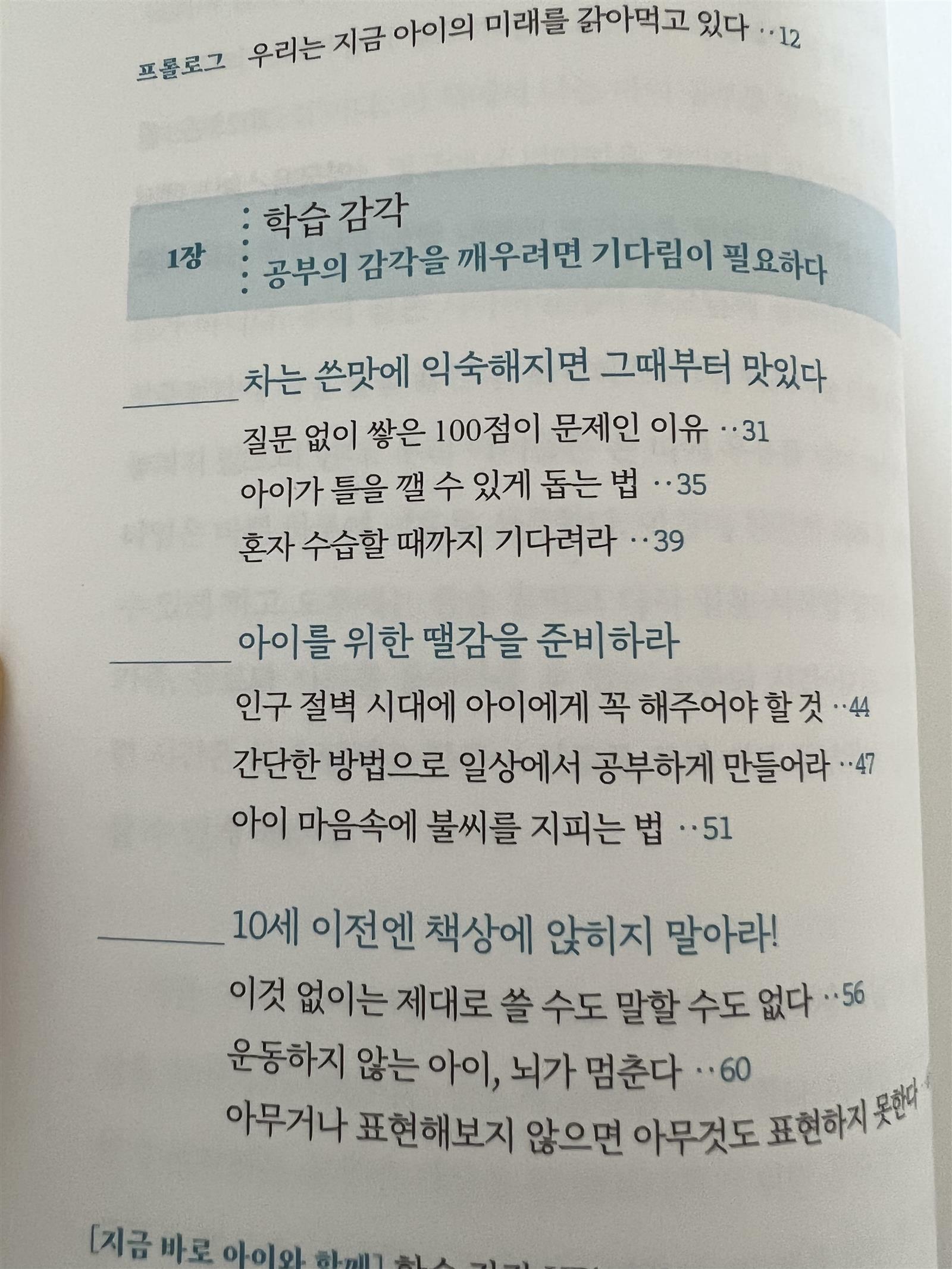 '공부감각, 10세 이전에 완성된다' 육아서를 읽어 보았습니다. 직접적인 공부코칭에 관한 이야기는 아니지만 전반적으로 아이를 키워나가야 하는데 중요한 키포인트를 알려주는 책이라서 많은 도움이 되는 책입니다. 많은 육아서를 읽고 있는데 그 때마다 새로 알고 배우는 것이 참 많은 것 같습니다. 이 책은 한국인 저자가 영국으로 유학을 가서 공부하고 교수가 되어 살면서 한국의 공부집착 현상을 안타까워하며 쓴 책이라고 할 수 있습니다. 책을 통해 영국의 아이들 이야기를 조금 들을 수 있는데 영국에서는 선행이라는 것이 없다고 합니다. 부모는 아이를 또 다른 인격체로 인정하면서 스스로 하도록 돕는데 우리나라는 대부분 아이들 공부에 방해 될까봐 부모가 작은 것도 해주는 분위기입니다. 이런 것 하나 하나가 아이에게 쌓여서 자기주도에 방해가 되는 것이 아닐까라는 생각이 듭니다. 아이를 키우면서 저도 모르게 아이가 할 수 있는 것도 시간이 느리다는 이유로 기다려주지 못 할 때가 참 많습니다. 그리고 우리나라는 부모가 아이와의 인생을 동일시하여 내가 못이룬 꿈을 이뤄주길 바란다는 것도 영국과 다른 점이라고 합니다. 무조건 영국과 똑같아야 하는 것은 아니지만 아이를 양육하는 입장에서 아이에게 행복을 주는 것이 먼저라는 생각이 들었습니다. 풍족하지 않아도 행복한 경험들이 쌓인다면 풍족하지 않은 것이 걸림돌이 되지 않는 것입니다. 오히려 그로 인해 또하나의 좋은 추억이 생기는 것이지요. 한 챕터 읽을 때마다 요점을 정리해서 알려주는데 그 부분이 참 좋았습니다. 자주 들춰보며 적용 할 때마다 다시 처음부터 읽기에는 어려우니 요점정리 부분만 다시 읽어 보면 좋을 것 같기 때문이죠. 아이를 양육하신다면 꼭 한 번 읽어보시길 추천합니다. 출판사로부터 도서를 제공받아 직접 읽고 작성한 리뷰입니다. #공부감각10세이전에완성된다 #조지은 #쌤앤파커스 #책세상 #맘수다 #책세상맘수다카페