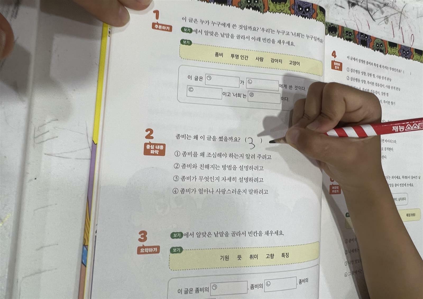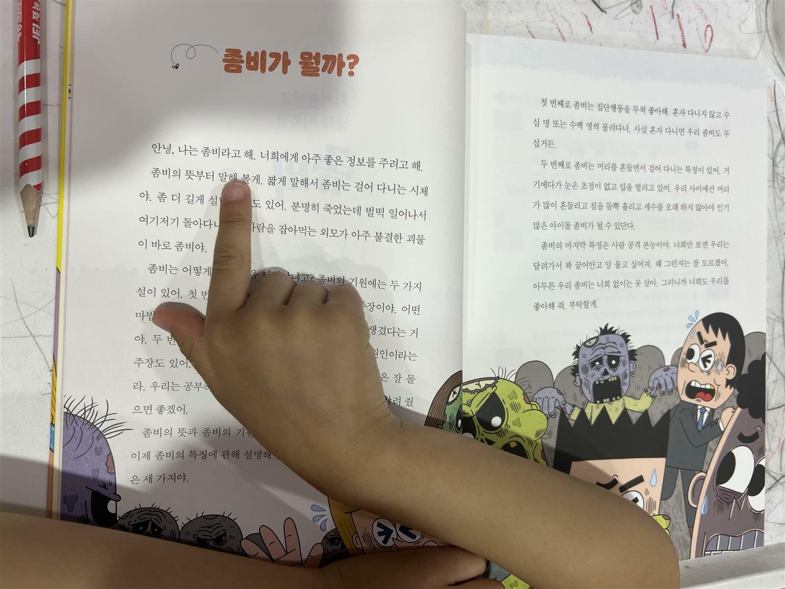 '문해력 파티' 라는 책을 아이와 함께 보았습니다. 이 책은 이야기 책이면서도 아이가 그 내용을 잘 파악하고 있는지 알 수 있도록 문제도 함께 있는 책입니다. 하지만 문제집처럼 딱딱한 느낌이 아니라서 아이가 여러번 읽기에 좋습니다. 문제를 거부한다면 일단 이야기부터 읽어보아도 재미있을 것 같다는 생각이 들었습니다. 문해력 파티 책은 총 1,2 권으로 되어 있어서 쭉 이어서 읽어 나가면 됩니다. 1권에서는 7가지의 무서운 괴물과 좀비 등이 나오며 그에 따라 아이들의 문해력을 향상시킬 문제들도 수록되어 있습니다. 책의 순서대로 해 나가면 좋을 것 같은데 아이가 선호하는 괴물이 있다면 그 부분부터 보아도 좋을 것 같아요. 일단 재미있고 흥미가 있어야 책을 읽고 문제도 살펴 볼 수 있는 것 같습니다. 초등학교 1학년에게 조금 어려울 수 있지만 이야기가 워낙 아이들 취향에 맞는 것이라서 초등 저학년은 읽기부터 진행하면 좋을 것 같습니다. 2권에서는 1권에서 나오지 않은 요정부터 피노키오까지 색다른 괴물과 요정이 등장합니다. 그들의 이야기를 읽다보면 나도모르게 책 속으로 들어가게 됩니다. 제가 읽어보아도 재미있더라구요. 하지만 재미로 끝나는 것이 아니라 정말 중요한 핵심을 찾고 기억 할 수 있는지 문제를 통해 점검합니다. 그래서 이 책이 문해력 파티 인것 같습니다. 책의 저자는 책읽기를 싫어하는 초등학생 이었다고 합니다. 하지만 재미있는 이야기책을 읽고 나서부터 책이 좋아지고 현재는 아이들의 글쓰기를 가르치고 있다고 하네요. 책을 태어나면서부터 좋아하기는 힘든 것 같습니다. 하지만 아이들에게 책의 재미를 알게해주고 무엇보다 함께 해나간다면 아이들의 문해력은 조금씩 향상하는 것 같습니다. 또한 이 책처럼 어느정도의 목적성을 가지고 아이들의 글읽기에 도움되는 질문들이 아이들의 사고력을 확장시켜주는 것 같습니다. 이야기 하나 하나가 짜임새있고 흥미로우며 아이들과 짧게 집중해서 공부 할 수 있는 점이 이 책의 장점인 것 같습니다. 초등 저학년의 경우는 잠자기 전에 함께 읽어보면서 문제를 풀어보아도 좋을 것 같습니다. 초등 고학년은 하루에 10분만 투자하여 하나씩 풀어보면 자신도 모르게 재미와 문해력 향상 두가지를 가지게 될 것 같네요. 딱딱한 독해 문제집에 지쳐있는 아이들에게 이 책을 추천해주고 싶습니다. 재미있게 문해력 향상 할 수 있을 것 같습니다. 출판사로부터 도서를 제공받아 직접 읽고 작성한 리뷰입니다. #문해력 #어휘력 #독해력 #표현력 #좀비 #프랑켄슈타인 #메두사 #뱀파이어 #투명인간 #늑대인간 #스핑크스 #괴물 #용 #인어 #도깨비 #앨리스 #유니콘 #피노키오 #팅커벨 #문해력파티 #북멘토 #책세상 #맘수다 #책세상맘수다카페