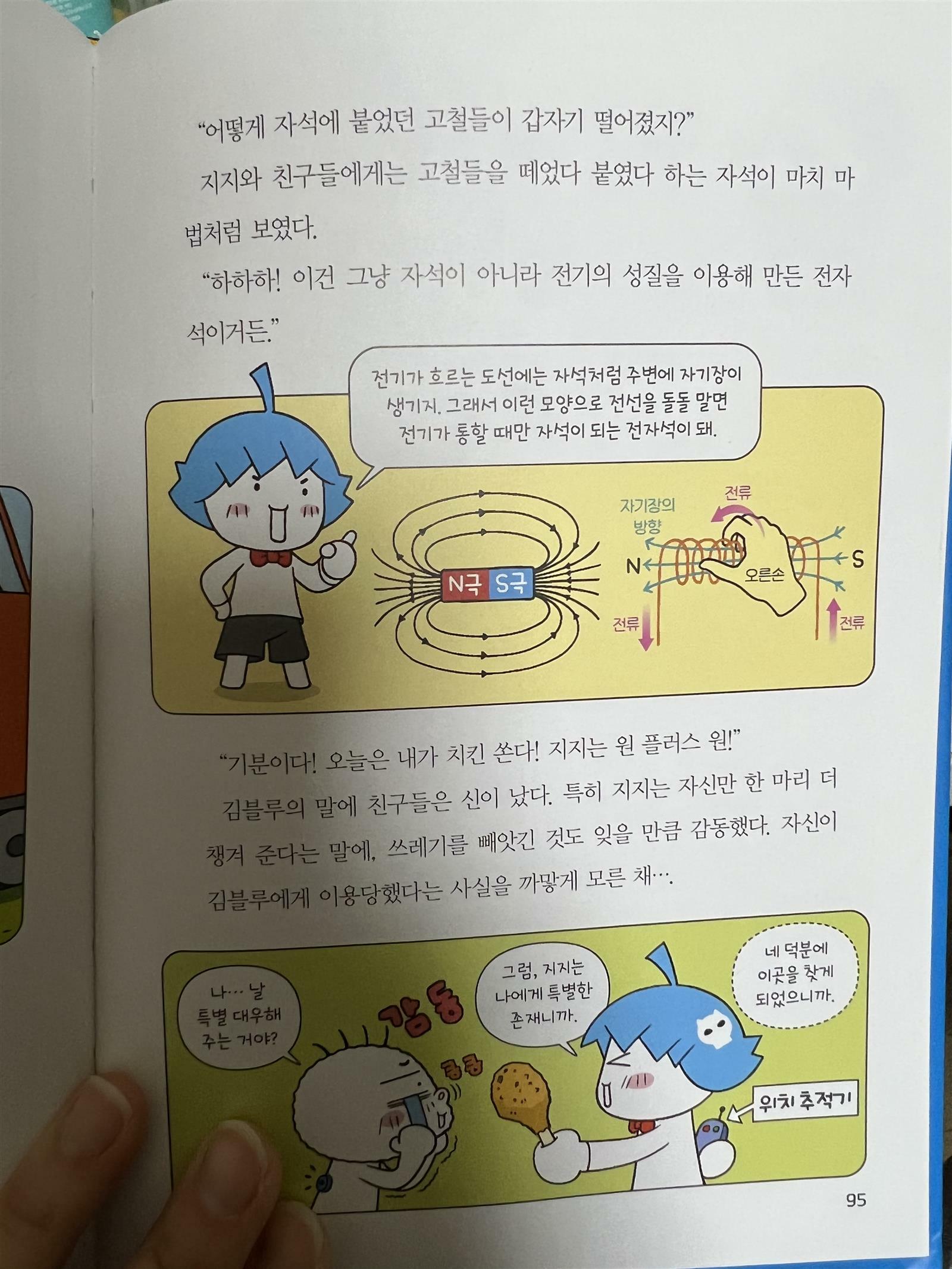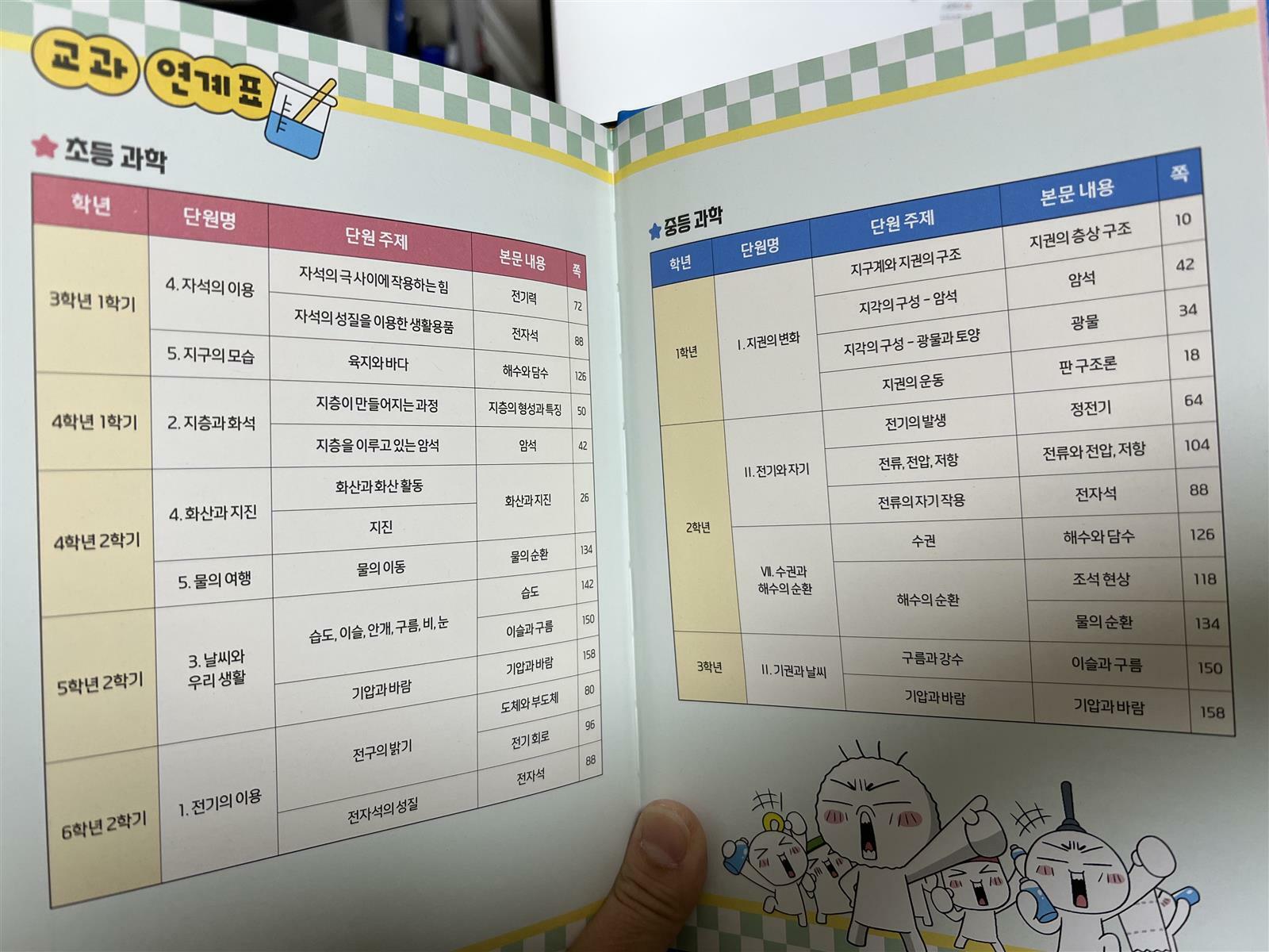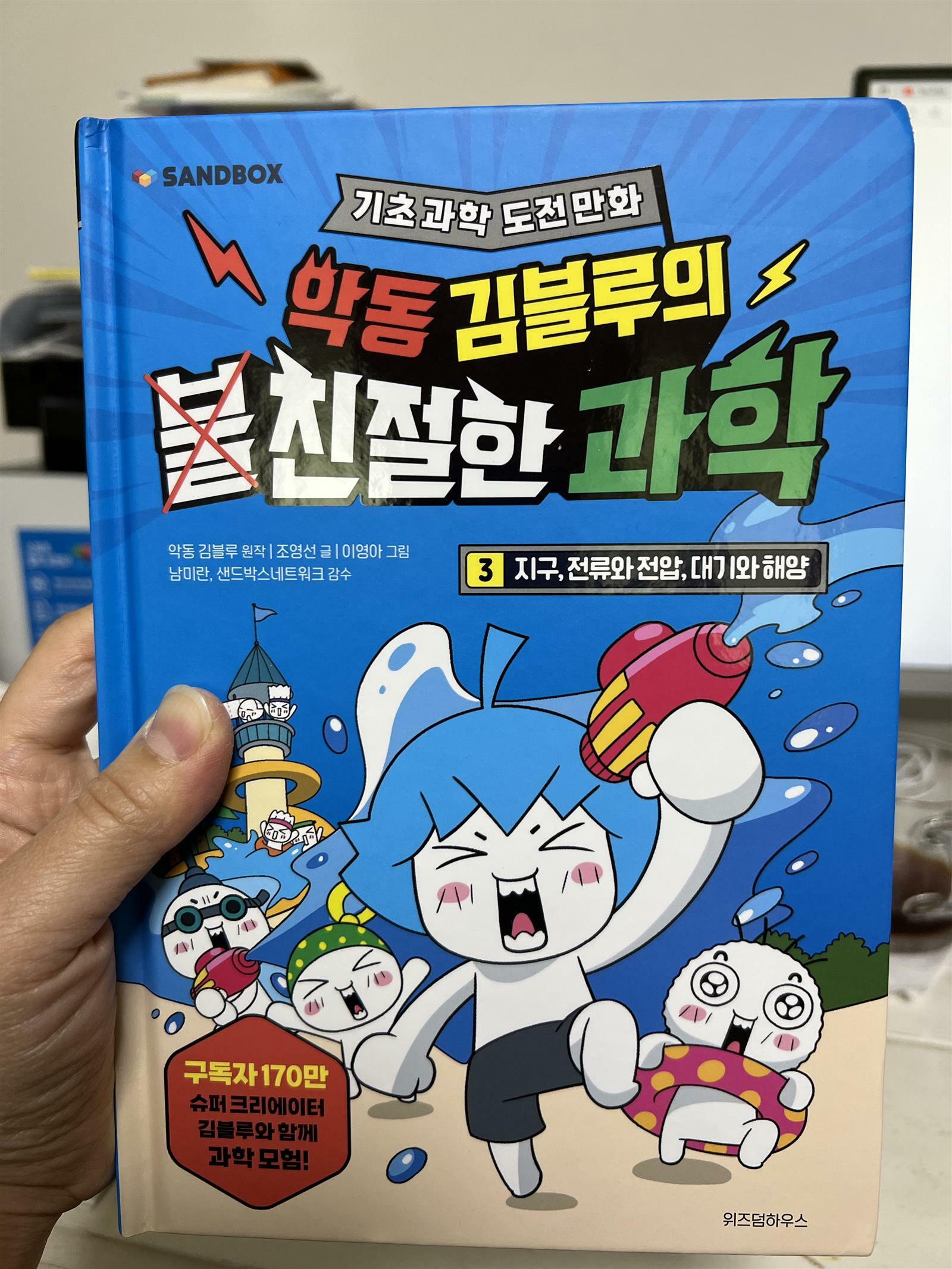 '악동 김블루의 친절한 과학' 책을 읽어 보았습니다. 기초과학 도전만화로 위즈덤하우스 출판사에서 출간한 시리즈 책입니다. 이번 책은 3지구,전휴와 전압, 대기와해양 주제를 가지고 이야기가 진행됩니다. 주인공들이 유쾌하고 재미있어서 과학을 어려워하는 아이도 쉽게 접근 할 수 있는 책입니다. 처음 주제를 설명하기 전에 만화 형식으로 이야기를 시작합니다. 주인공들의 이야기를 따라가다보면 어느새 과학 이야기에 빠져들게 됩니다. 지구의 중력을 쉽게 이야기하면서 줄글도 섞어가며 전문용어도 나오는 지식책입니다. 하지만 지식만 전달하는 책보다 이해와 접근이 쉬워서 아이들이 읽어 나가기 수월한 것 같습니다. 그림체외 색감도 좋아서 초등학생들도 읽어가면서 배경지식을 쌓을 수 있습니다. 과학 같은 지식은 용어가 중요하기에 아직 배우지 않은 지식도 조금씩 노출하며 자연스럽게 배우면 도움이 많이 되는 것 같습니다. 1,2학년은 아직 과학 교과릉 배우지 않지만 이런 책을 통해 조금씩 용어를 노출한다면 나중에 수월 할 것 같더라구요. 물론 현재 과학 교과릉 배우는 학년의 경우에는 이 책도 보면서 지식을 넓혀가며 다져가면 좋을 것 같습니다. 책 뒷 편에는 초등과 중등 교과 연계표가 있습니다. 이 책을 통해 중등 과학 지식도 자연스럽게 스며들 수 있다는 장점이 있어요. 지금 배우는 부분이 아니어도 이렇게 자연스럽게 접하는 것이 참 좋은 것 같습니다. 교과에서 새롭게 보면 조금 어려울 수 있지만 책을 통해 어느정도 지식이 있다면 수업시간에 흡수하기에도 좋을 것 같아요. 오늘 소개한 책 이외에도 다른 시리즈 책들이 있는데 한 권씩 실펴보면서 과학배경지식을 넓혀나가면 좋을 것 같습니다. 우리 삶에 항상 함께하는 과학을 책을 통해 더욱 친해 질 수있는 것 같아 추천합니다. 출판사로부터 도서를 제공받아 직접 읽고 작성한 리뷰입니다. #악동김블루의친절한과학 #지구전류와전압대기와해양 #위즈덤하우스 #기초과학도전만화 #책세상 #맘수다 #책세상맘수다카페