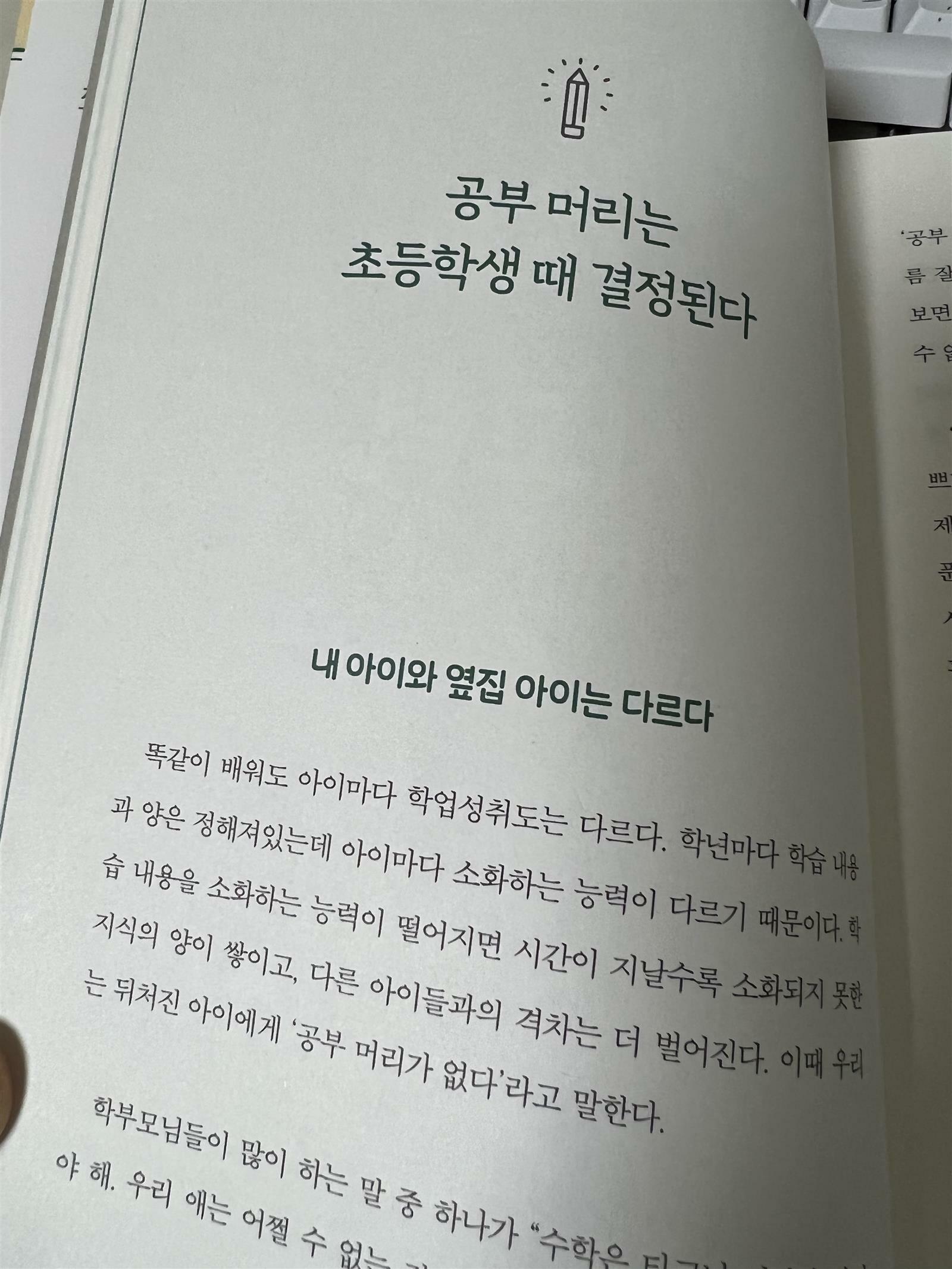 '공부자립' 이라는 책을 읽어 보았습니다. 이 책은 사고력교육전문가 박주봉 소장이 알려주는 공부 자립이야기 입니다. 이 책에서 중요하게 다루는 주제는 사고력 입니다. 아이들의 사고력을 향상시키는 방법으로 가장 중요한 것은 질문하기라고 합니다. 질문을 어떻게 하는지가 참 중요하다고 합니다. 질문을 통해 아이가 사고 할 수 있도록 이끌어 주어야 하는 것이 핵심인 것이지요. 책을 통해 알게된 것은 뇌를 사용하는 범위가 아이들마다 다르고 그 역량을 높여주는 것이 바로 사고력을 향상 시키는 것이라고 합니다. 아이들이 타고난 공부머리가 있지만 그렇지 못한 아이들의 경우에도 훈련을 통해 골고루 뇌를 사용하고 범위를 확장시킬 수 있다고 합니다. 물론 아이마다 사고력을 높이기까지의 시간이 다르지만 기다려주면서 해나가면 가능하다고 합니다. 지금 현재 상황을 잘 파악하고 어떤 부분이 부족한지 어떻게 도와야 하는지 부모의 관심과 기다림이 많이 필요한 것 같습니다. 박주봉 전문자는 사고력 뿐 아니라 독해력과 응용력에 관해서도 설명하고 있습니다. 요즘 문해력이 많이 이슈가 되고 있는데 옛날부터 독해력은 중요했다고 합니다. 독해력이 없이 수능 문제를 풀기에 어렵습니다. 그냥 문자만 읽는 것이 아니라 그 뜻을 이해하면 읽어야 진짜 독서라고 할 수 있다고 합니다. 이해가 되어야 호기심도 생기고 더 깊은 독서로 갈 수 있는 것이겠지요. 무조건 긴 글을 읽고 있는다고 해서 독서를 잘한다고 말 할 수 없는 것입니다. 독서에 관심이 많아 아이들에게 독서를 권장하는데 이러한 책의 내용을 토대로 올바른 독서교육을 해야겠다는 생각을 했습니다. 마지막 장에서는 부모의 태도에 대해서도 이야기하고 있습니다. 아이를 잘 알고 정말 필요한 것이 무엇인지 부모가 알아야 하는 것 같습니다. 초등때부터 많은 사교육을 시켜서 아이가 힘들어하고 공부에 대한 인식이 좋지 않게되면 중등, 고등에 가서도 바뀌지 않는다고 합니다. 초등 시기에 부모는 공부는 자발적으로 해야 한다는 인식을 심어주는 것이 중요하다고 합니다. 이 책에서는 초등시기를 매우 중요하고 보고 있습니다. 그래서 유아부터 초등 부모님들에게 이 책을 추천하고 싶습니다. 책을 통해 내아이를 좀 더 객관적으로 바라보고 정말 필요한 것이 무엇인지 생각해 볼 수 있는 것 같아요. 출판사로부터 도서를 제공받아 직접 읽고 작성한 리뷰입니다. #공부자립 #알에이치코리아 #박주봉 #책세상 #맘수다 #책세상맘수다카페