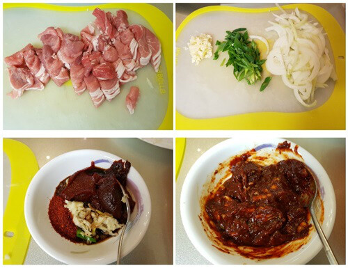 5. 밑간한 돼지고기에 양념장을 넣어 간이 배도록 버무리기
