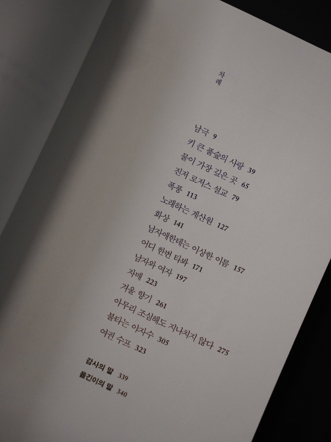 (표제작 남극은 이미 <너무 늦은 시간>에 수록된 작품이라 제외했다.)