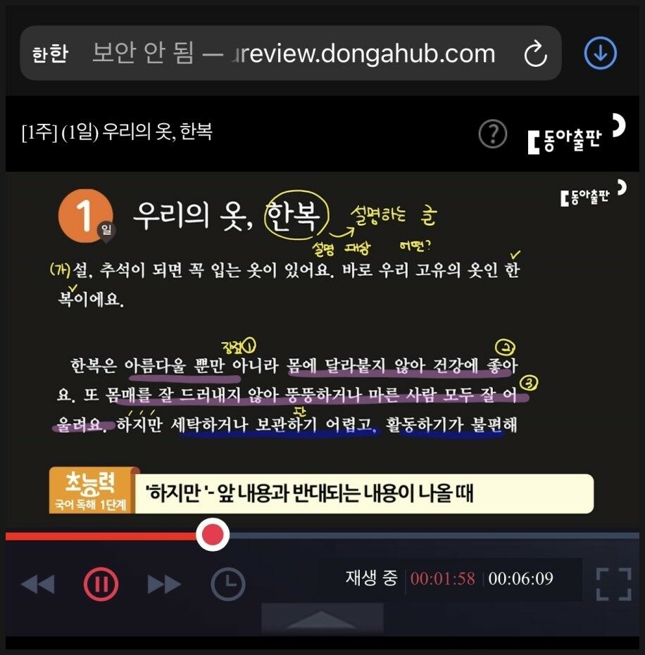 동아출판 초능력 국어 독해는 무료 동영상 강의를 들으며 자기주도학습이 가능하더라고요