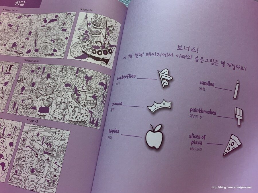 끝에 나오는 정답 페이지 다음에 보너스 숨은그림찾기를 하며