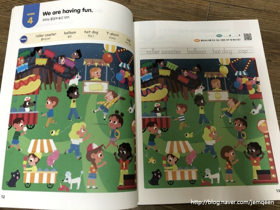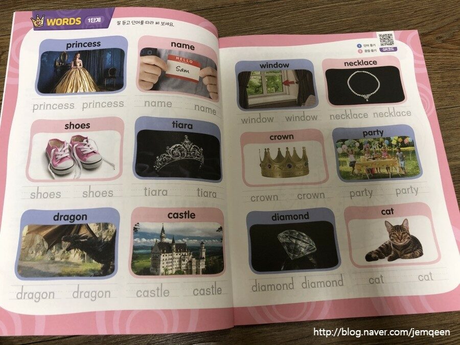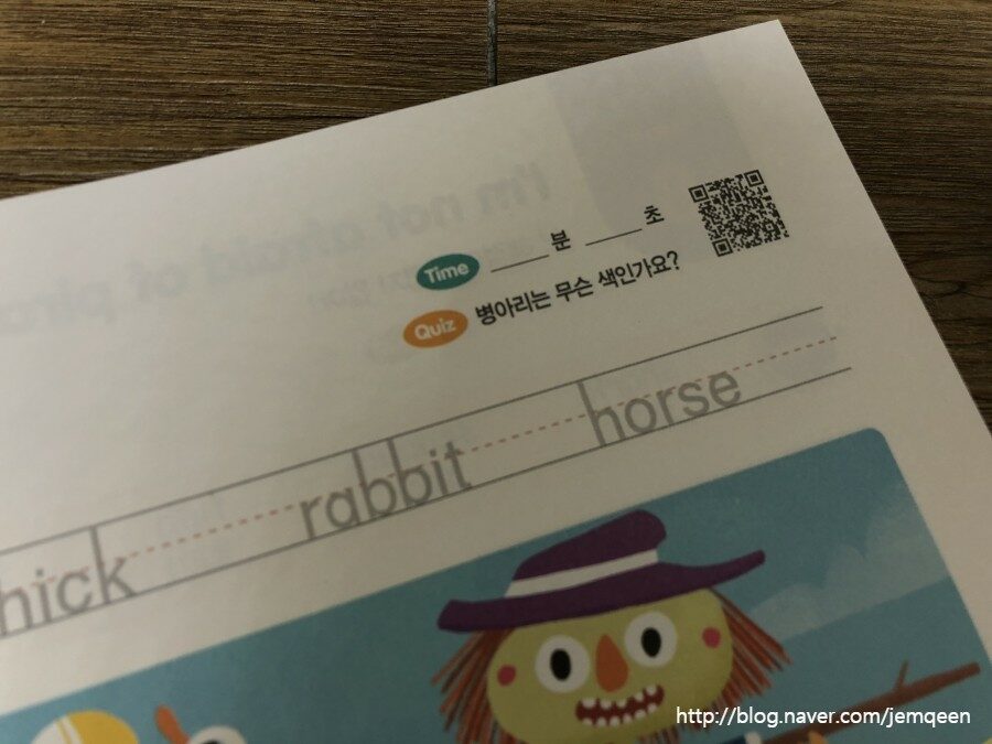 QR코드를 찍어 들려주며 반복하며 영어유치원교재대신 영어워크북으로 활용하네요