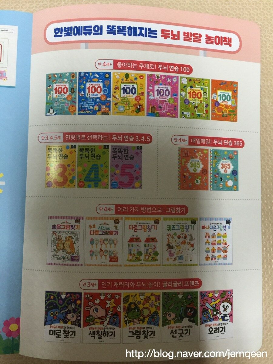 한빛에듀의 다양한 두뇌 발달 놀이책인데요