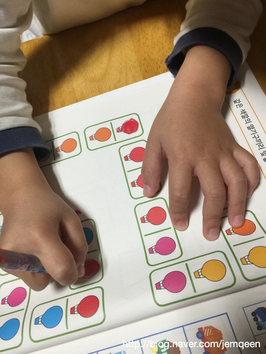 아이가 점점 자라면서 칸안에 색칠을 할 수 있게 되더라고요^^