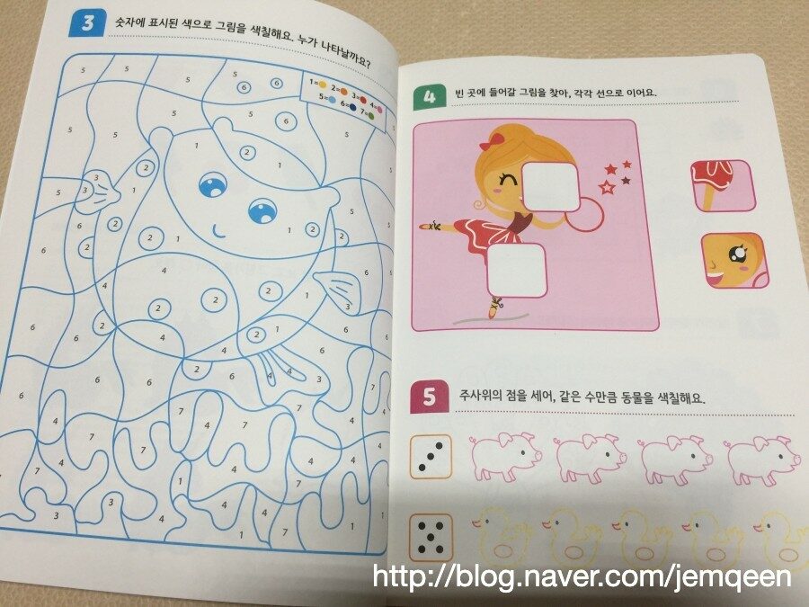 수잇기로 숫자도 배우고 선잇기도 하고 나중에 색칠놀이도 할 수 있어서