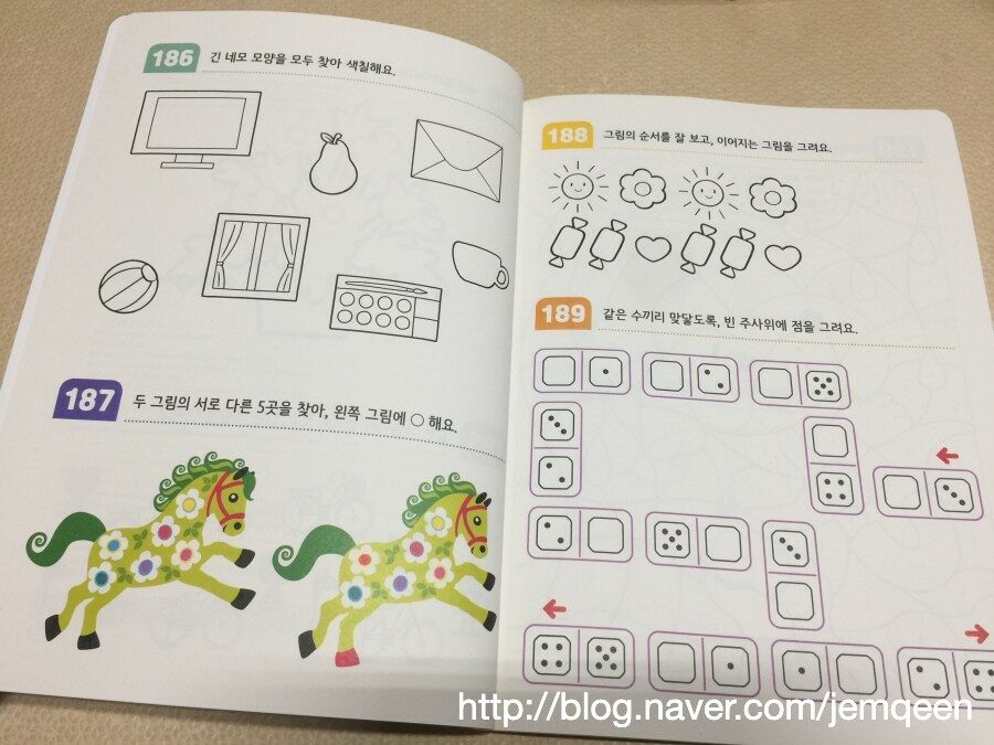 IQEQ발달에 좋은 그림찾기, 미로찾기, 색칠하기, 점잇기, 그리기, 수세기,규칙찾기 등 다양한 활동으로