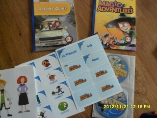 본품구성은 CD 2장과 단어카드 (그림과 함께 앞뒤로 단어장 ) 매직어드벤쳐 인물 그림