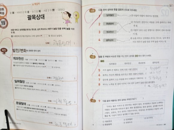 한자는 외워봤지만, 한자 성어는 처음이라~ 문제를 풀면서 저에게 질문을 던지더라구요.^^