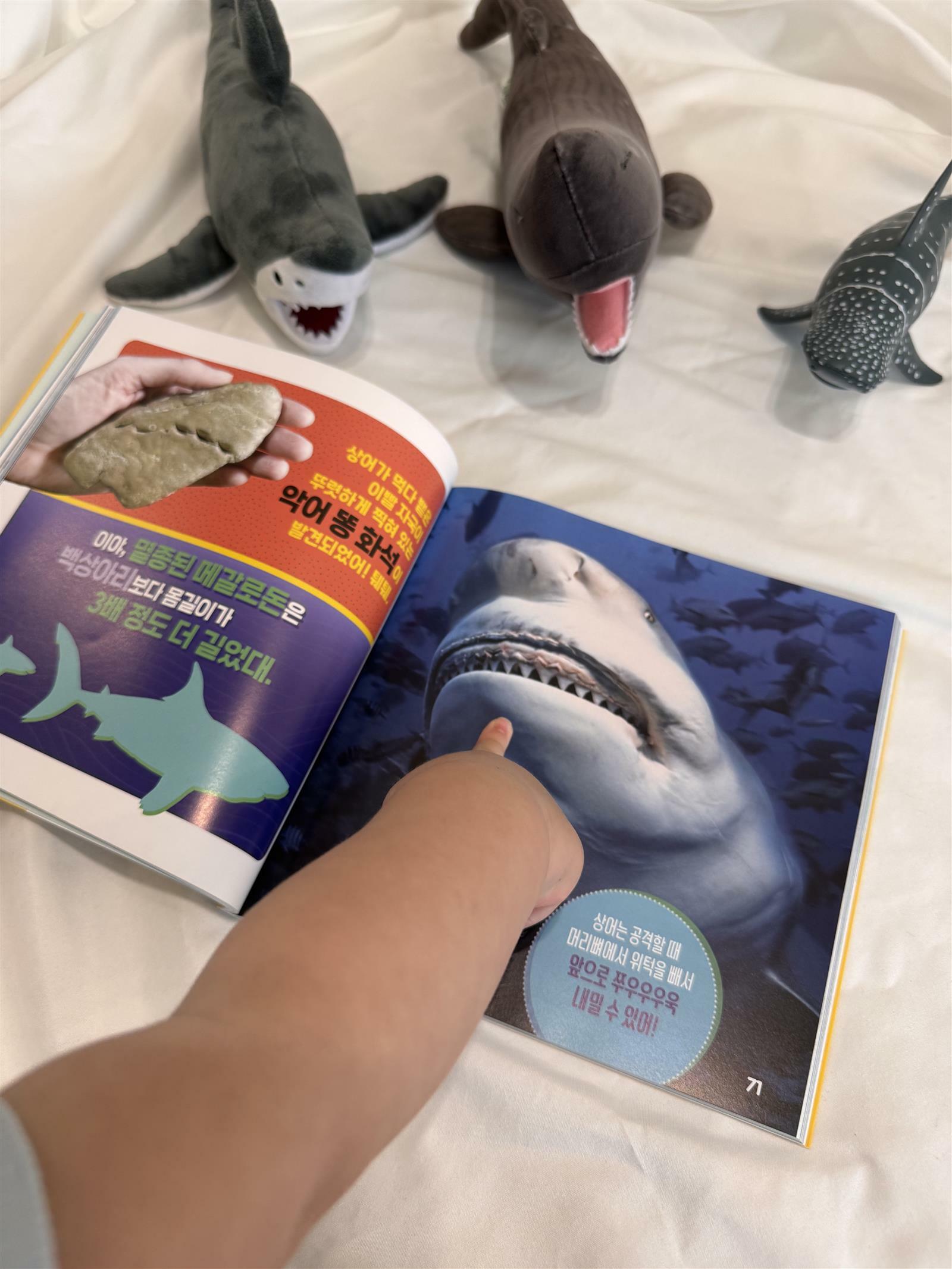 자연 책과 아기상어노래로 접하게 된 상어에게 큰 관심을 보이던 아들.ᐟ 🦈 이제 상어 단어만 이야기해도 삐-밤-하며 지느러미를 만들어 흔들거려요 〃’ᴗ‘〃 이렇게 좋아하는 상어에 대해 더 자세히 상어에 대해 알려주는 “기발하고 괴상하고 웃긴 과학 사전! 상어“ 📚📖 그냥 단순히 무섭고 큰 바다 동물로 알고있었는데 저도 몰랐던 새로운 사실들이 많더라구요 .ᐟ 상어 친구? 인 고래에 대한 이야기도 있어요 ~ 아이들이 이해하기 쉽게 사진도 리얼하고 설명도 간단하게 쏙쏙-들어오고 제목에 맞게 기발하고 괴상하며 웃긴 지식들이 가득합니다 ❤︎ 상어의 300가지 비밀이 궁금하지않나요 .ᐣ 저희 애기들은 아직 어려 이해는 못하지만 이제 표지만 보고도 읽어달라며 신나합니다. 🦈 아마 상어사진이 보고 싶은거겠죠 .ᐣ 상어 좋아하는 아이들 .ᐟ 과학 좋아하는 아이들 .ᐟ 꼭 한번 읽어보면 좋을꺼 같아요 ~ 저는 다른 시리즈도 구매하여 볼 생각입니다 📚 추천추천.ᐟ
