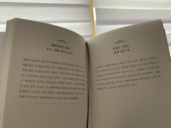 한 페이지 한 페이지 소중하지 않은 구절이 없을 정도 였다. 모든 페이지를 소개하기엔 저작권도 그렇고 몇 페이지만 사진으로 첨부하겠다. 부디 많은 사람들이 아리스토텔레스의 말을 읽고 그처럼 삶의 깊은 지혜와 선구안을 가지길 바란다.