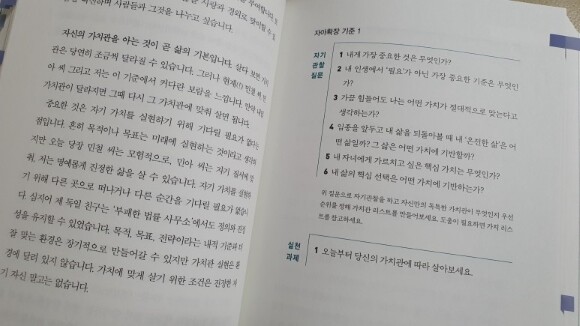 이어 ‘실행 단계’에서는 실천과 체계적인 행동으로 어떻게 내 삶의 기준을 구체적으로 외부로 실현할 수 있는지를 다룬다. 여기에서는 자신만의 다양한 아이디어를 통해 갖가지 가역성 실험을 해보고 그 속에서 경험을 쌓는 데 중점을 둘 것을 제안한다. 더불어 첫 시도의 결과가 상상한 결과와 다르다고 해서 좌절하지 말고 장기적으로 탁월한 결과를 내기 위해서 의도하고, 또 의도할 것을 제시한다. 이 때 우리는 “한번 해볼게요.”라는 말의 함정에 빠지게 되는 것에 주의할 필요가 있다. 저자는 ‘한번 해본다’는 것이 뭐냐면 하긴 하되 100퍼센트 책임지고 헌신하고 싶지 않다는 뜻이라고 말한다. 즉, 어떤 일을 하면서 실패와 포기 가능성을 염두에 두는 것이다. 이는 두려워서 스스로 빠져나올 구멍을 마련하는 것이며, 행동하는 것처럼 보이긴 하지만 전력을 기울여 헌신하지 않는 것이다. 그동안 나는 한 번 해보겠다는 말로 실행하지 못한 것들이 얼마나 많았던가, 덕분에 나를 객관적으로 돌이켜보고 반성해보게 되었다.
