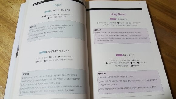 본격적으로 들어가기에 앞서 저자는 각 도시에 따른 필수 미션을 통해 어느 것을 선택해도 아깝지 않을 만한 특별한 경험들을 간략히 압축해 소개한다. 효율적인 이동에 중점을 두고 지하철, 버스, 도보 이용 중 어느 것을 선택하는 것이 편리한지 간단한 기호로 그려놓음으로써 독자들에게 이동에 적절한 교통편을 알려주는 것은 물론, 체크 리스트를 통해 각 미션지에서 경험해보면 좋을 만한 내용들을 간략하게 추천한다. 이를 테면 '오다이바 해변공원에서 레인보우 브리지를 배경으로 <자유의 여신상> 인증샷 남기기', '영강가 딘타이펑 본점에서 소룡포 즐기기, 망고빙수와 우육면, 펑리수 맛집 탐방하기', '경건한 마음으로 대한민국 임시정부청사를 방문하고, 유럽풍의 신천지 카페와 레스토랑 즐기기' 등이다.