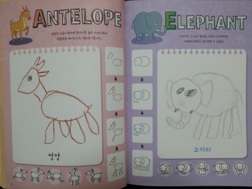 동물이름과 동물그리는 순서가 간단하게 나와있어요.
