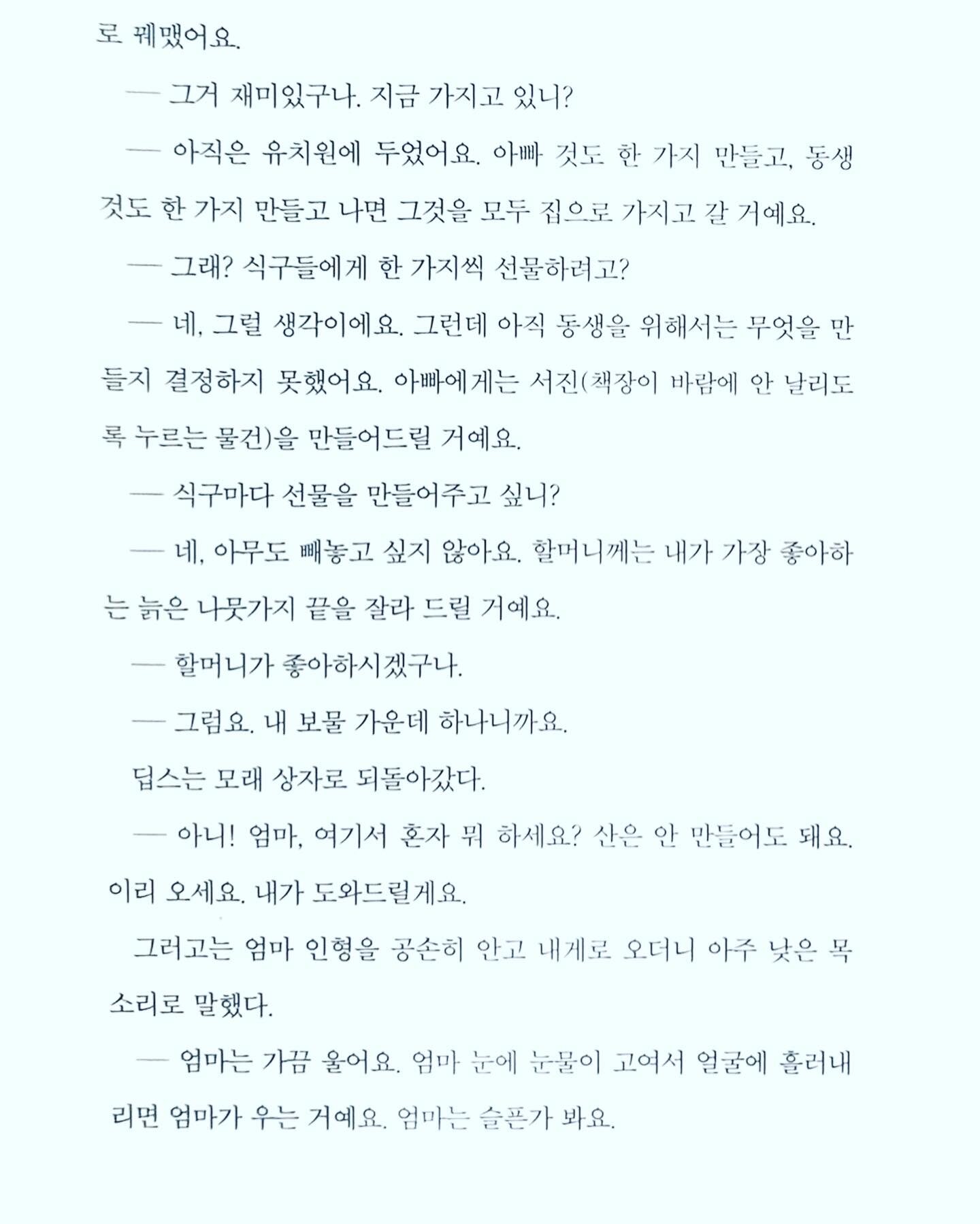 중요한 것은 내 자신을 아는 것, 그리고 내 자신에게 답이 있다는 것을 기억했으면 좋겠다. 내가 건강해야 내 아이도 건강하다는 간단한 진리를 이 책은 우리에게 또다시 이야기를 통해 교훈을 남기고 있다. 초겨울 날씨라 몸은 춥지만, 마음이 따뜻해지는 책이었다,