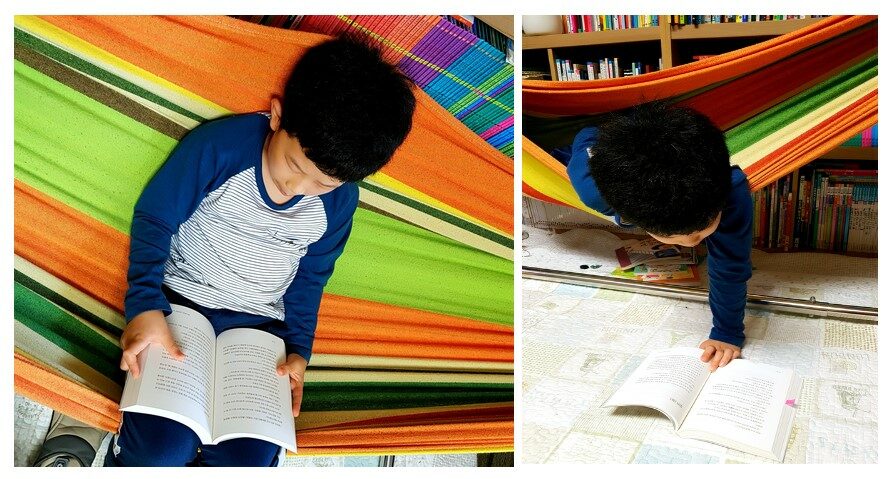초등학교 3학년 둘째가 "엄마 재미있어요?" 하며 두께를 보고 읽을까 말까 고민하더니 너무 재미있다는 말에 한 장 두 장 읽더니 어느새 빠져 버렸어요. 해먹에서 책을 자주 보는데 왜 이러고 보는 걸까요?