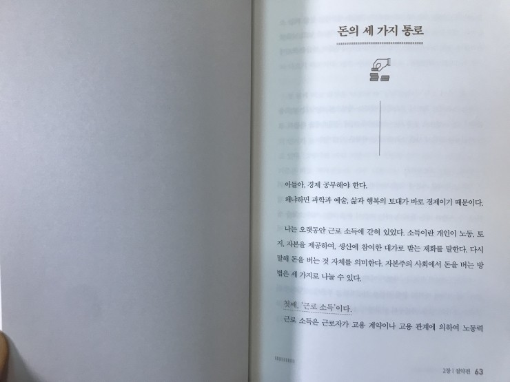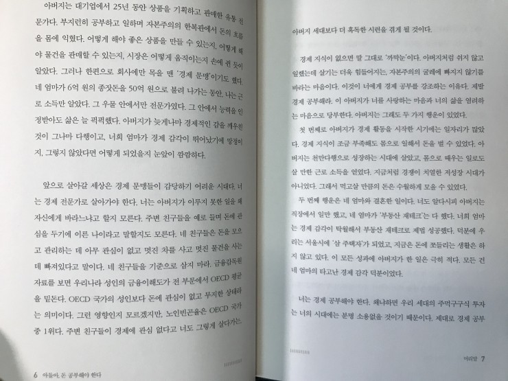이 책은 아버지가 아들에게 대화 하듯이 경제문제와 상식들에 대해 알려주고 있어