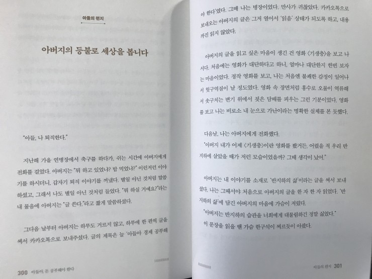 아들의 편지에서 아버지에 대한 사랑이 느껴져