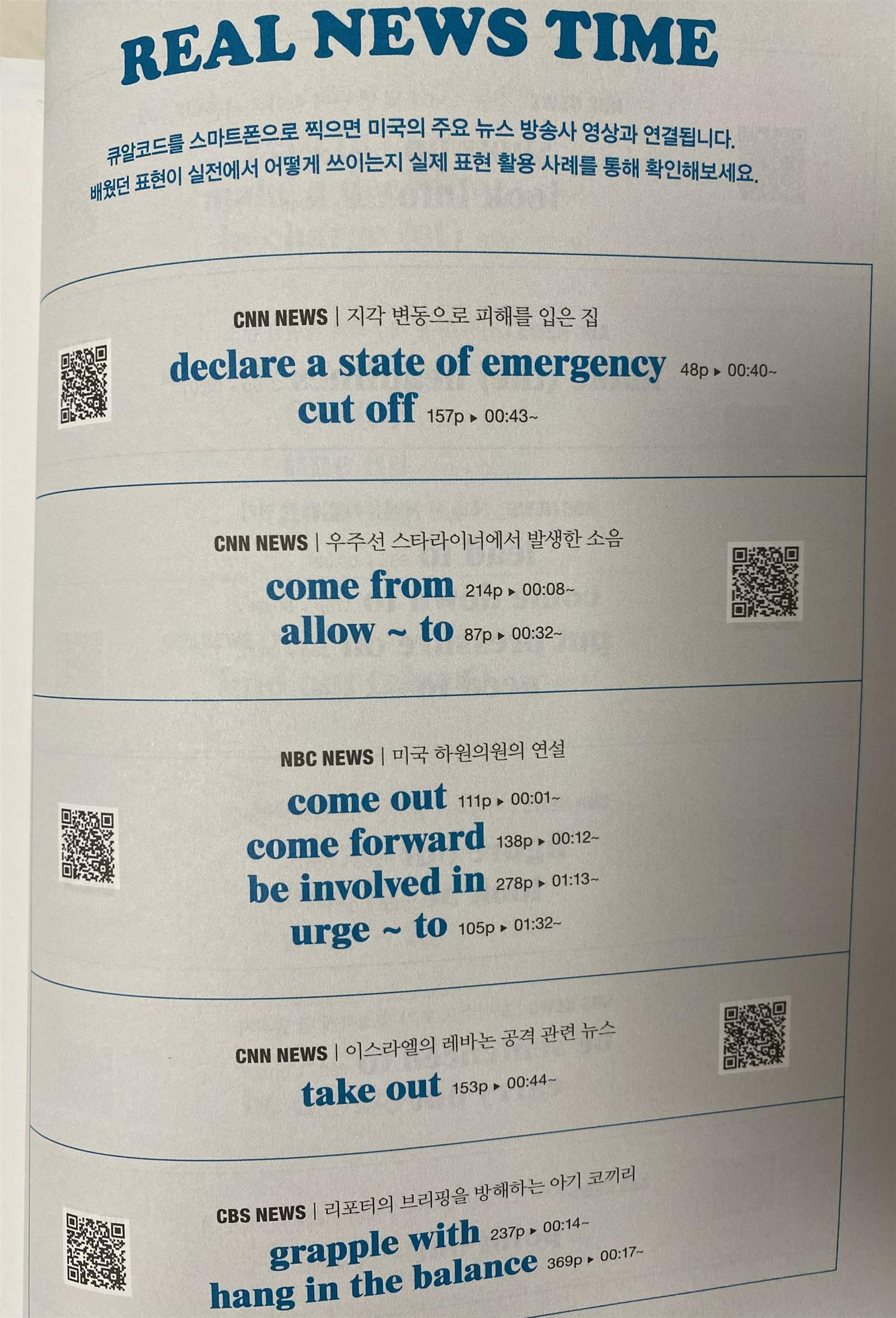 [책을 제공받아 서평을 작성합니다]뉴스영어 네이티브 영어표현력 사전은 사전이라는 책 이름에 걸맞게 찾고 싶은 표현이 있다면, 사전처럼 찾을 수 있습니다. 책의 뒤쪽에는 실제로 사용되는 표현을 뉴스로 볼 수 있도록 되어 있습니다. 이 책은 뉴스에 나오는 영어 표현들을 주로 소개합니다.