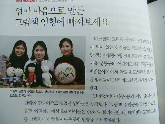 요즘은 다시 서울과 섬을 오가는 생활을 하는지라 그동안 목말랐던 문화행사에 부쩍 관심이 많아졌다. 그런데 우리동네에 이런 협동조합이 있다닌 눈이 번쩍 떠진다. 동화속에 등장하는 주인공을 인형으로 만들다니..아이디어가 참 신선하다.