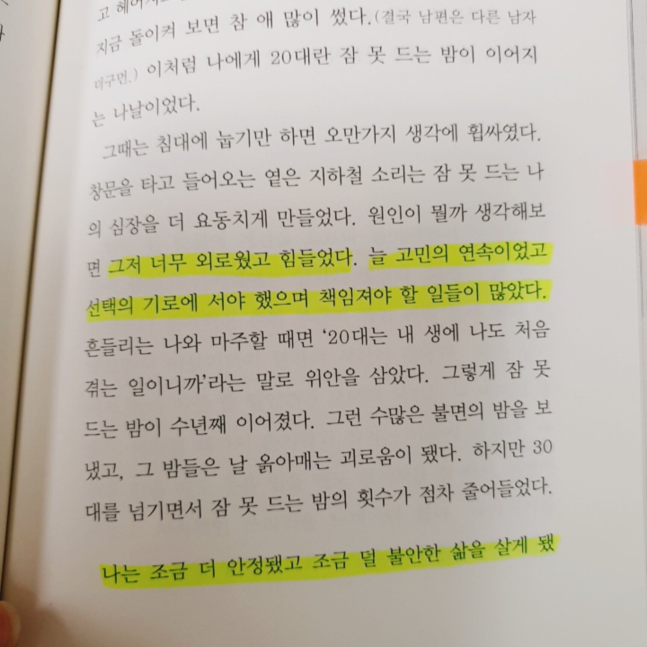 30대를 살아가는 나의 모습을 그대로 들여다볼 수 있게 해주는 책이다.