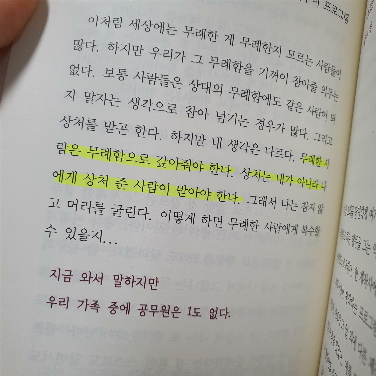 내가 직장에서 못하는, 끙끙거렸던 말을 작가는 시원하게 날렸나보다 싶다. (매번 그런건 아니었겠지만 그래도 한번, 두번은 해보신듯!)