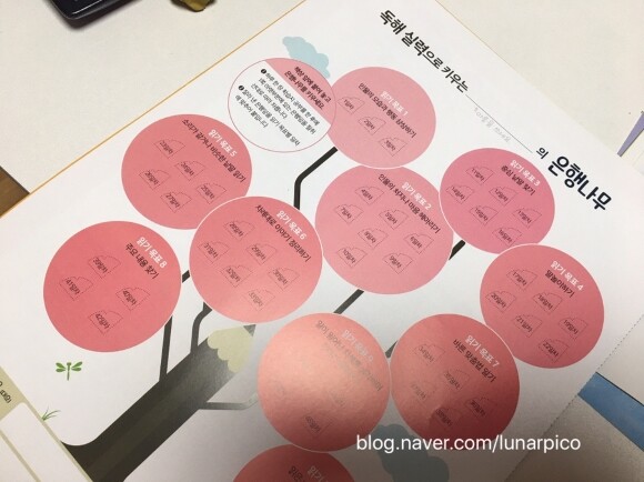 매일 열심히 풀고 교재 하단의 은행잎을 오려붙이다 보면 어느새 나무가 다 풍성해질거에요~~~