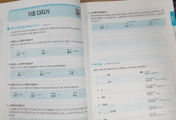 기초가 약한 분들, 그래도 합격을 위해서 공부하시는 분들을 위해 기초 다지기부터 시작을 합니다. 어려운 발음은 집중해서 연습하도록 구성해두었네요. QR코드 찍으면 또 음성을 들으며 공부할 수 있습니다.