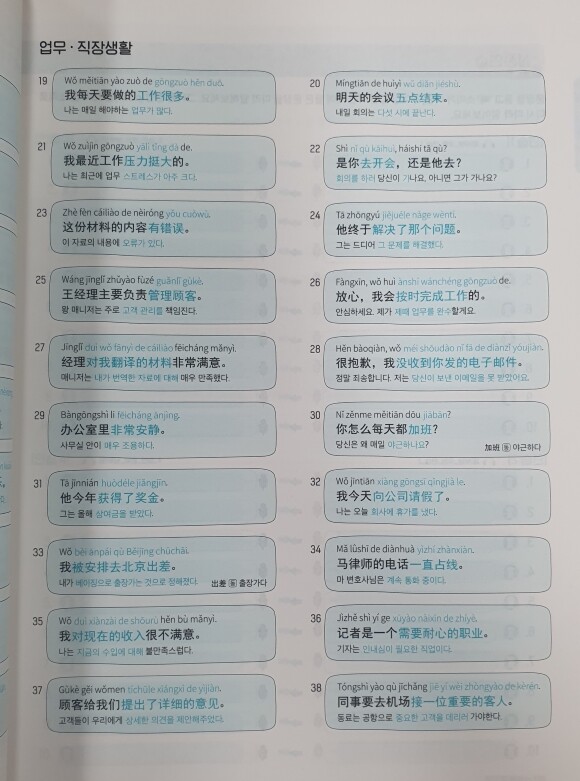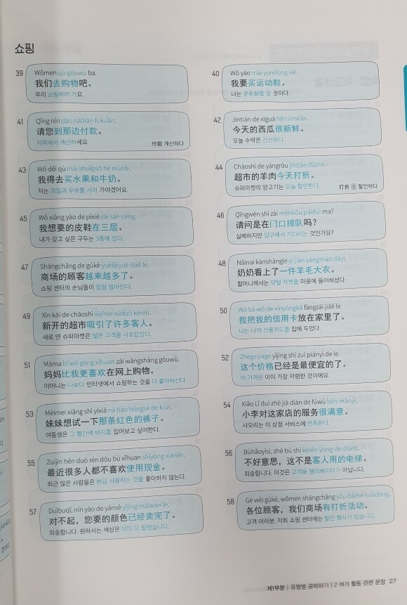 이렇게 주로 하는 표현들을 쭉 정리해놓은 파트도 있습니다. 업무나 쇼핑에 관련된 내용을 보니 예전에 열심히 공부하던 추억이 새록새록 떠오르네요. 자주 나오고 활용해야 할 부분들을 쭉 정리해놨기 때문에, 공부할 때 계속 외워두면 실전에서 유용할 것 같습니다.
