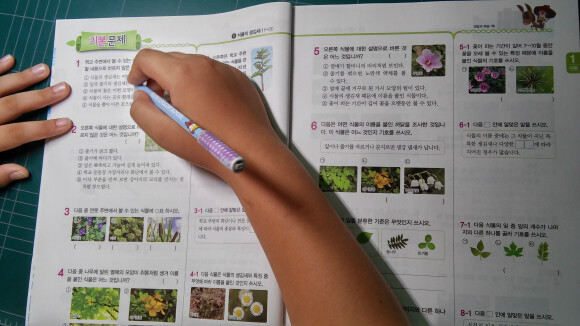 꼼꼼하게 문제를 읽고 답을 찾아 쓰는 모습이 기특했어요.