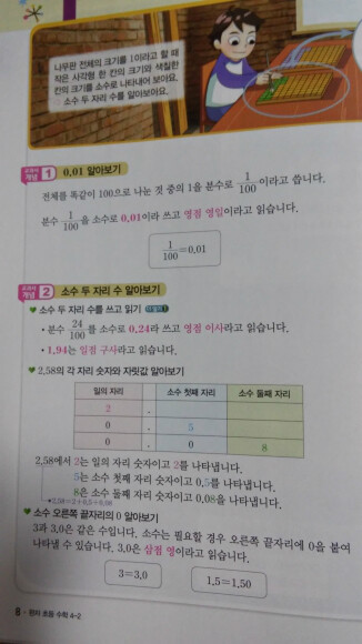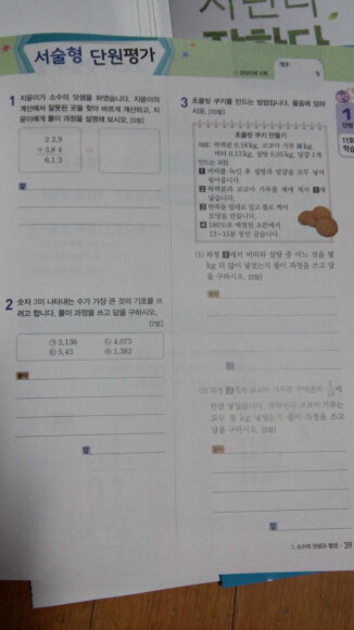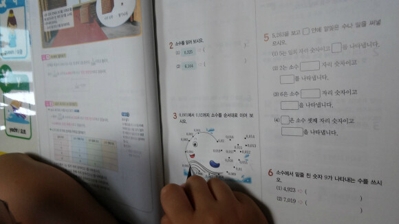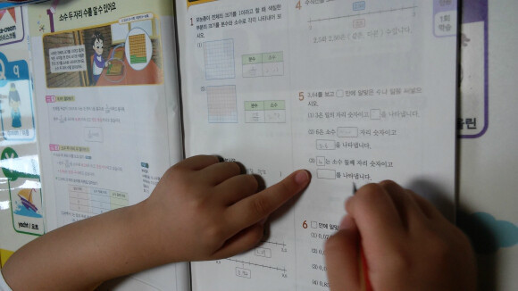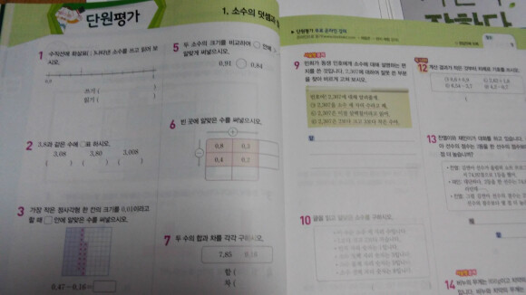1단원은 소수의 덧셈과 뺄셈이라서 쉽게 하고 있어요.