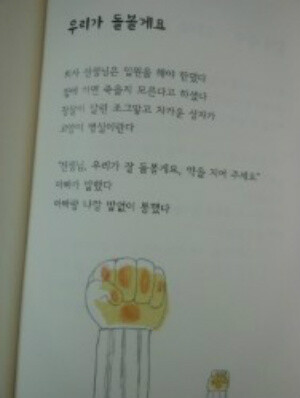 조금 의아해 하는 아이에게 튼튼한 팔 근육을 만들어 보라고 했어요.