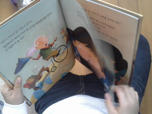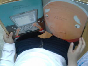 아이가 며칠 들고 다니더니, 엄마 아빠한테 퀴즈를 내고 있어요.