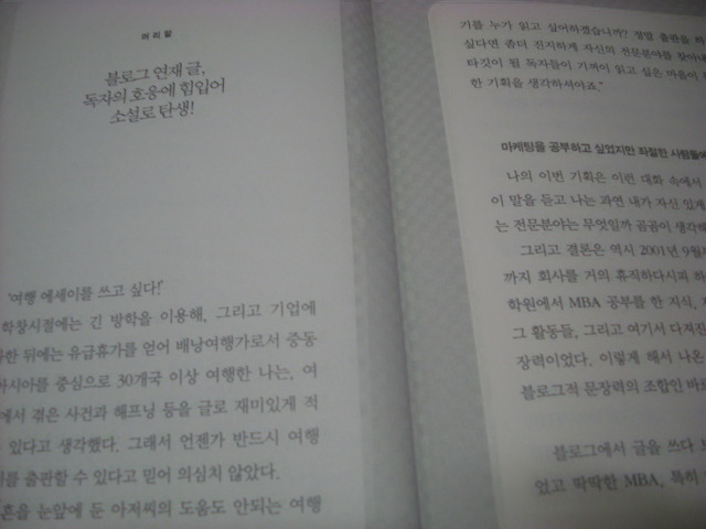 그래서 한 장 한 장 넘겨가며 읽는데 내용이 너무나 쉽게 어려운 마케팅을 풀어 쓴 것이 무척 재미있더군요.