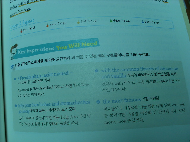 또한 왼편에는 구문들을 스프치할 때 아주 요긴하게 써먹을 수 있는 핵심 구문들도 잘 익힐 수 있도록 옮겨 놓고 있어