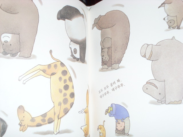 책을 읽은 후 실제로 이불 같은 걸 펴 놓고 함게 구르기 놀이를 하면 아이들의 기쁨은 배가 되겠죠.