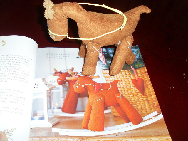루돌프의 다리를 붙이는 것을 저는 처음에 책을 안 보고 내 마음대로 어렵게 바느질해서 갖다 붙였는데 제대로 서