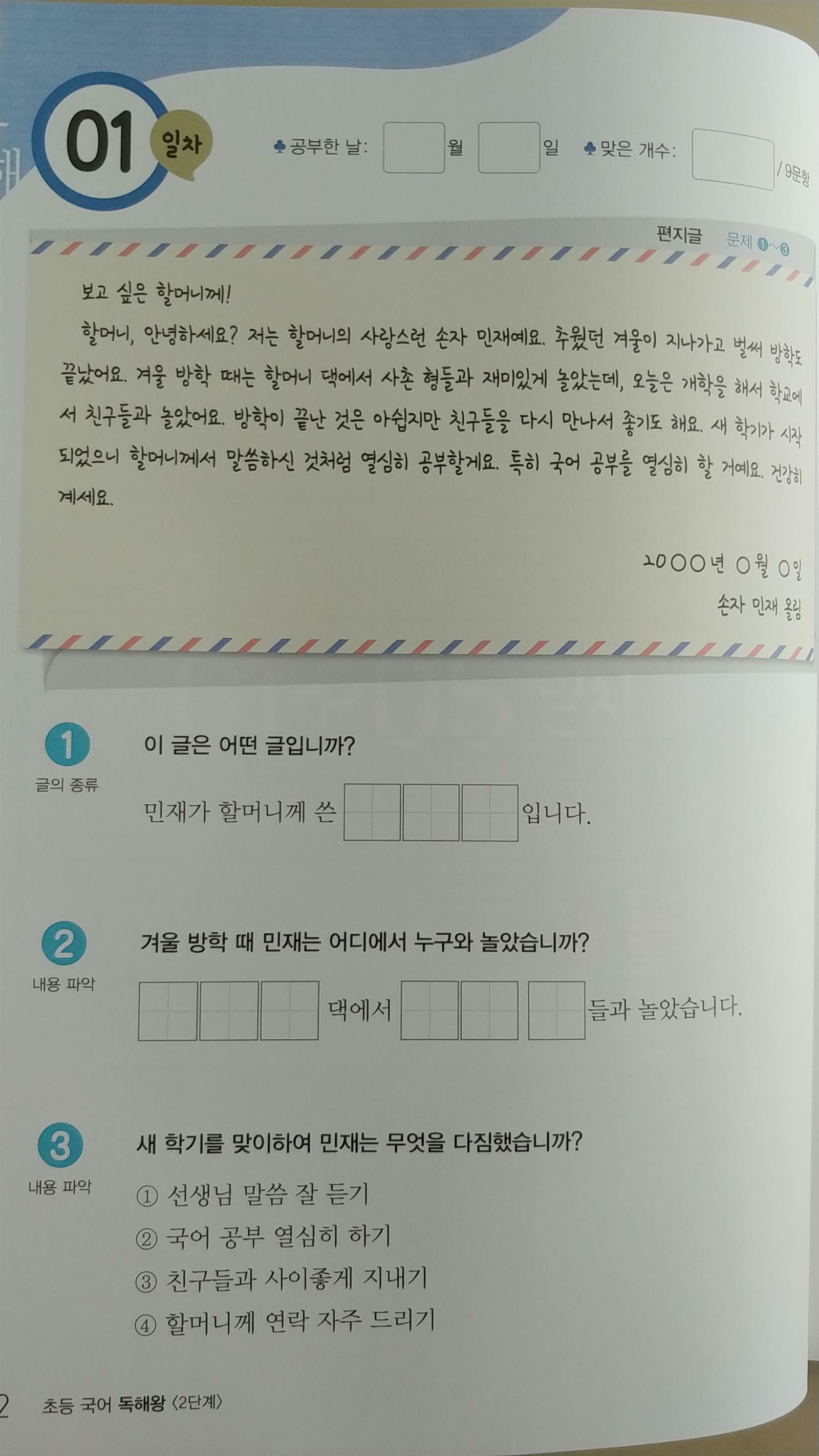 독해왕은 단계별로 지문의 길이에 차이가 있고 단어 수준도 다릅니다. 이미 현직 선생님의 경험으로 교과과정의 목표가 교재에 반영되어 있습니다. 지문 전개방식도 난도의 차이가 있습니다. 만약 느닷없이 만족할 평가 결과를 만든다면 아마 소수에 지나지 않을 것입니다.