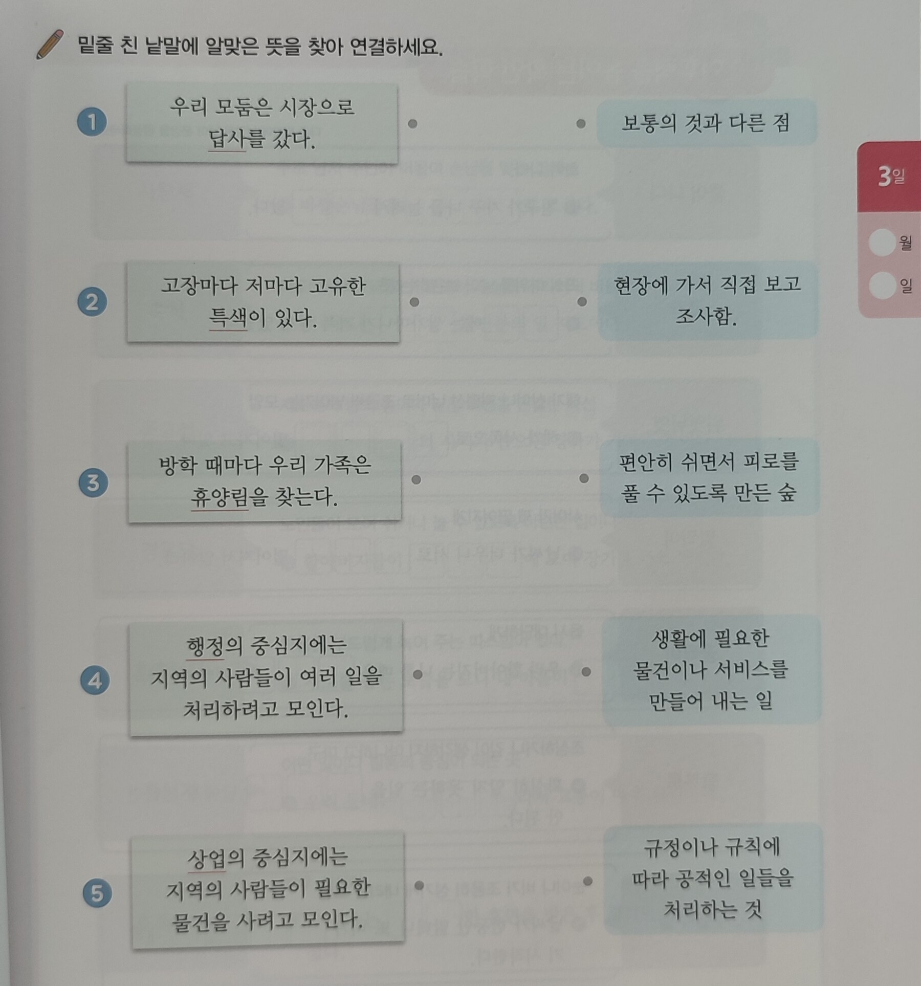 앞에서 공부한 어휘들을 다시 한번 확인해 보면서 확실한 어휘 학습이 되었는지 점검해 볼 수 있습니다.