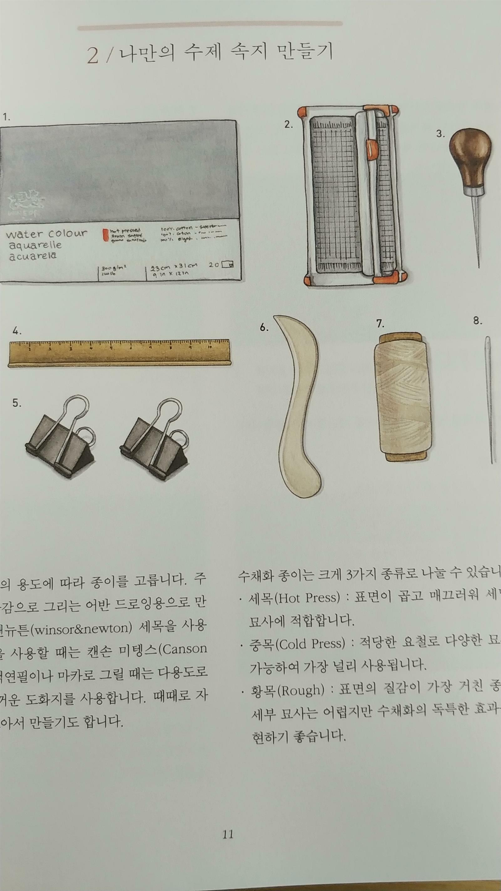 그림의 시작부에 다양한 재료에 대한 설명과 사용법이 나와있어 초보자도 쉽게 그림을 시작하는데 도움이 됩니다.