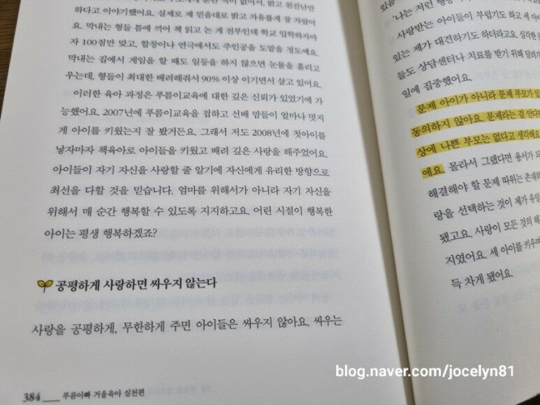 아이를 있는 그대로 사랑하기 위해 엄마의 일상 언어부터 바꿔보고 언제나 너희들을 사랑한다는 사실을 표현하고, 엄마도 가끔은 실수를 한다는 것을 말해주며, 진심을 담아서 사과할 수 있는 용기를 낼 줄 알아야 한다고..