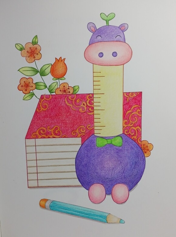 꽃은 수성펜으로 쓴 후 물붓으로 수채화처럼 칠했습니다.
