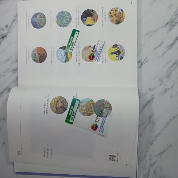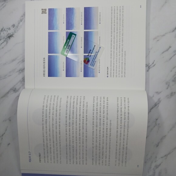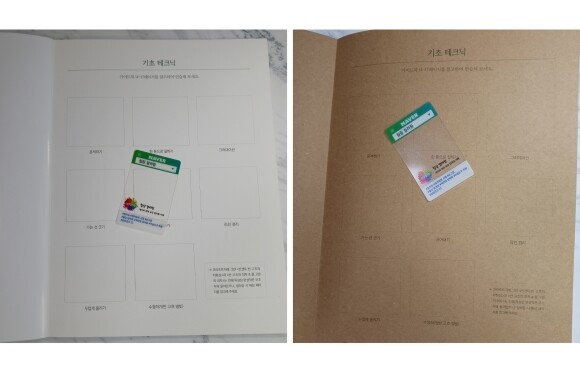 이 책은 180도로 활짝 펼쳐지는 제본방식인데 저는 잘못해서 첨부터 이렇게 접어서 펼쳐보기 시작해서 뒤쪽으로 넘길수록 힘이 들었어요.