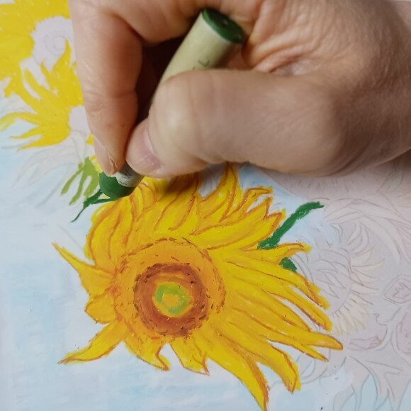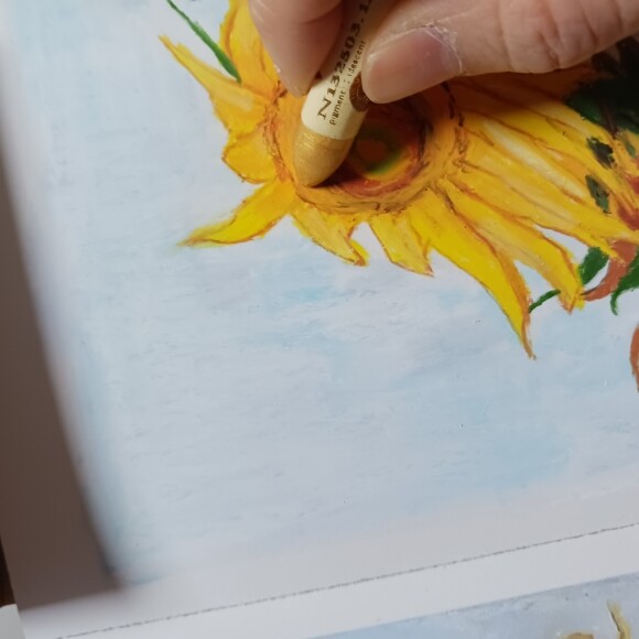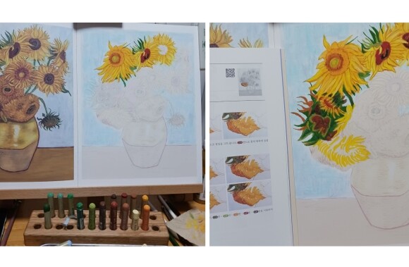 따뜻한 질감이 잘 살아나는 색연필로 그림을 그리신다고 하신다"