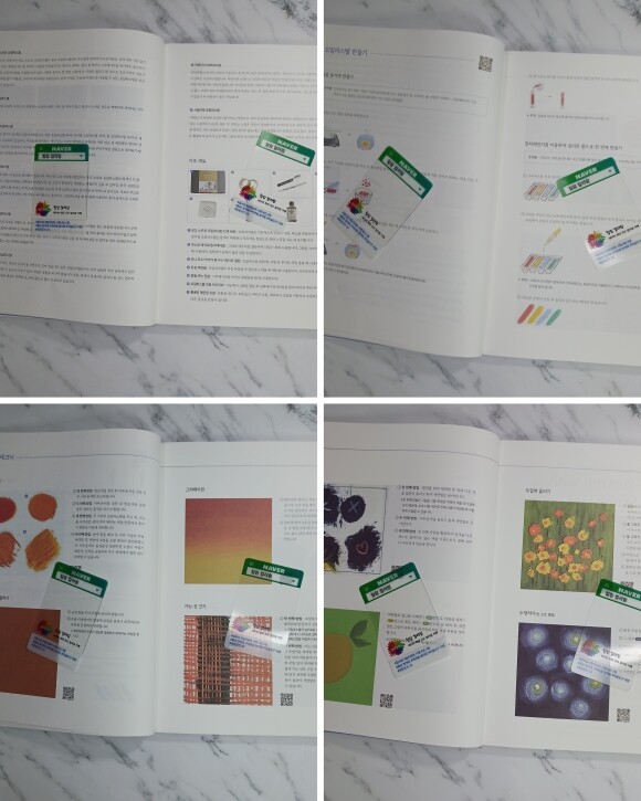 완성본과 바로 옆에 보고 따라 할수 있는 컬러링 도안이 있습니다.