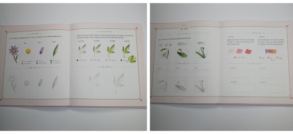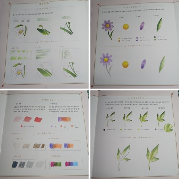 색연필로 사용했고. 기초 연습도 할수 있고 도안별 색연필 색상표가 있어서 색을 찾기가 수월할것 같아요.